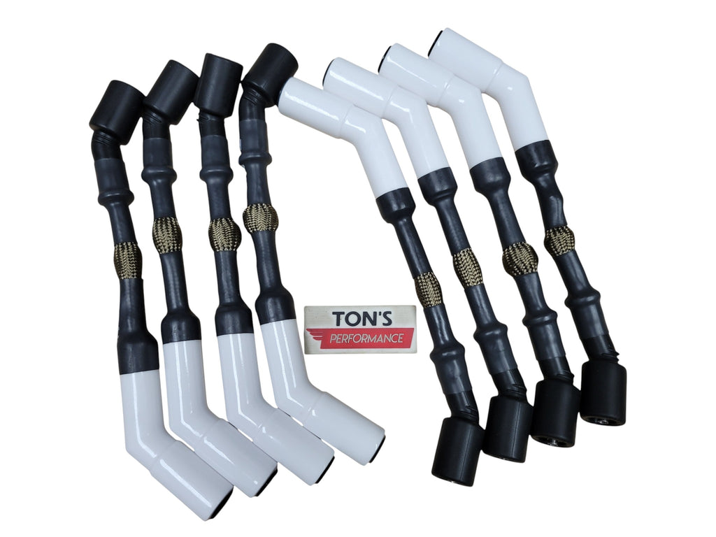 Features two-layer 100% silicone inner core & outer jacket keeps the wires flexible for the life of your vehicle maintaining its vibrant color with heat protection to 600º F. With the added Silicone/Fiberglass exterior sleeve rated up to 1300º F, these are the ultimate set of wires for those experiencing heat issues!